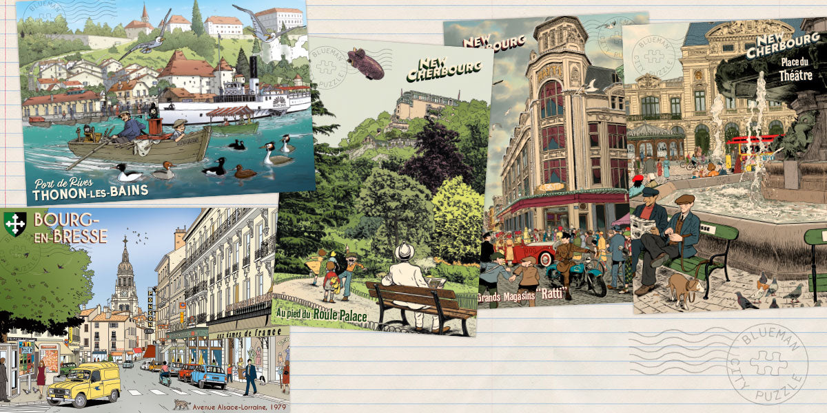 Découvrez nos Blueman City Puzzles, par des dessinateurs locaux. 1000 pièces, made in France